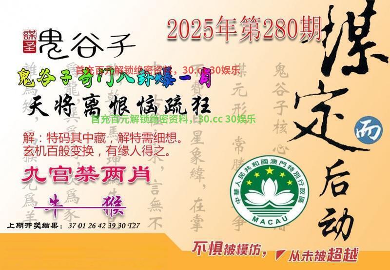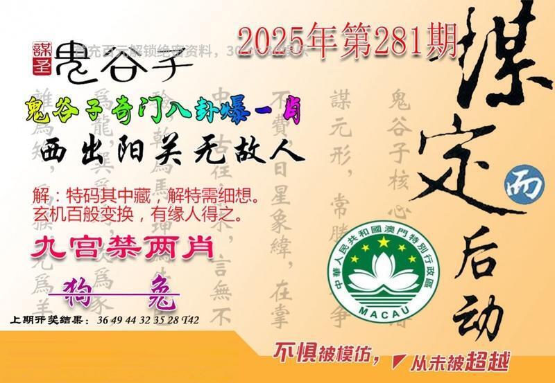 280期澳彩鬼谷子【天将离恨恼疏狂】开鼠42中 |